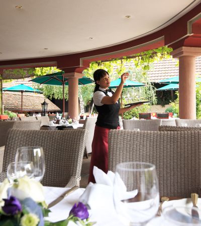 All year long, the archway with its beautiful stone pillars is, especially for breakfast and for lunch, an outdoor place where you can really experience the seasons, while your eyes wander freely over the Krone’s wide courtyard.